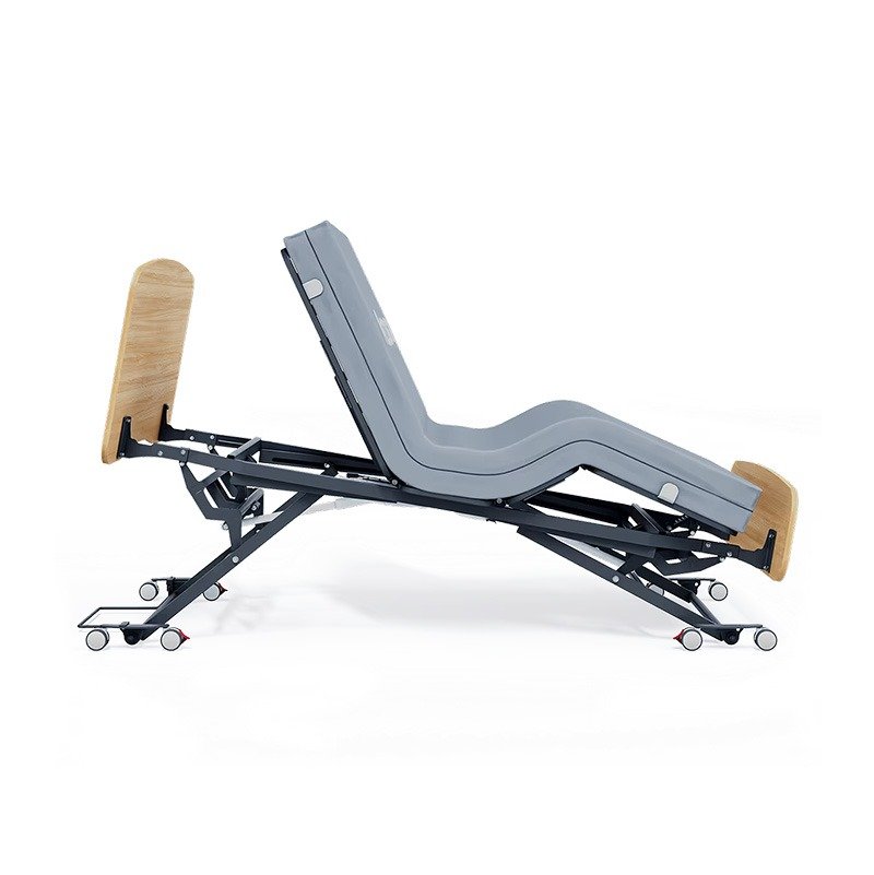 The Accora FloorBed™ offers exceptional fall prevention by lowering close to floor level, reducing injury risk while maintaining comfort and support. Featuring FloorBed™ technology, it adjusts in height and length with two width options, supporting various care needs. Over 1,000 design combinations allow customization to suit any room. Compatible accessories, such as assist bars, enhance functionality. Proven in clinical studies to reduce falls and related injuries, this bed combines innovative safety features with a stylish, home-like design.