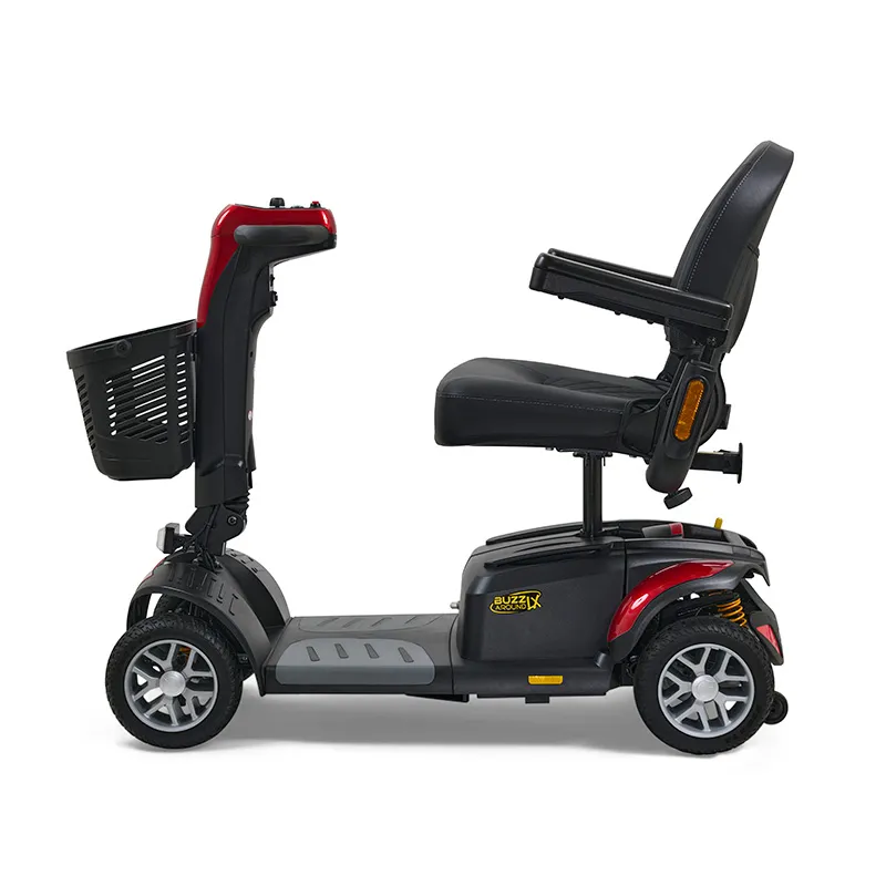 This model disassembles easily for transport while maintaining the feel of a full-size scooter. Standard features include a USB charging port, full LED lighting package, smooth suspension system, and long-lasting batteries capable of up to 18 miles per charge. Available in both 3-wheel and 4-wheel configurations, the Buzzaround LX is an excellent choice for users seeking a premium scooter that balances comfort, versatility, and portability.