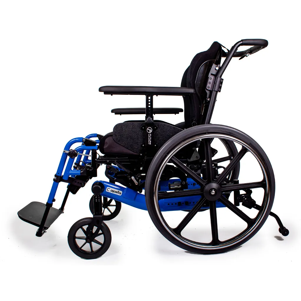 Designed with adjustability at its core, the Capella offers multiple configuration options including adjustable seat and axle positioning, back angle adjustment, and optional power tilt. Additional features such as anti-tippers, wheel locks, and customizable components allow the chair to grow and adapt with the user over time. The Capella is an excellent solution for users seeking a reliable, flexible wheelchair that combines comfort, support, and practical everyday functionality.