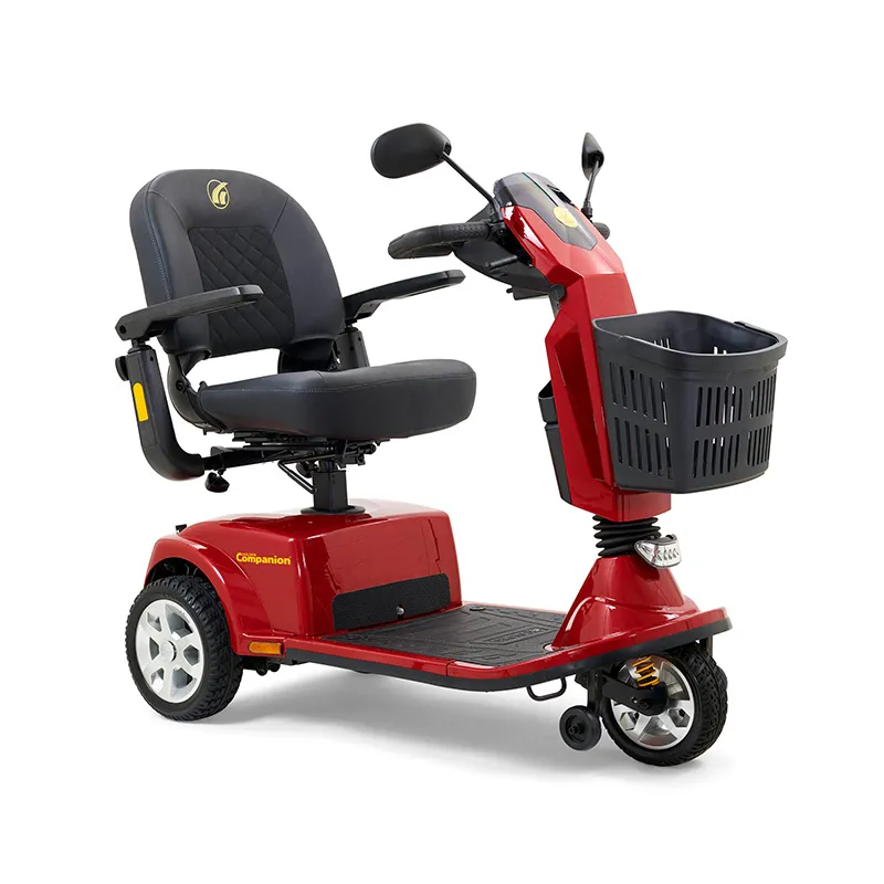 This next-generation model features a redesigned, infinitely adjustable Delta tiller with a digital dash and console, including a percentage battery indicator, water-resistant controls, and a convenient USB charging port. Full front and rear suspension ensure a smooth, controlled ride, while the high-back stadium seat with quilted diamond stitching and added padding enhances comfort and support. Practical features such as a sliding swivel seat, bright LED lighting, easy-to-read control panel, and removable shopping basket make daily use simple and convenient. Designed for full-time portability, the Companion disassembles easily for transport and is available in a range of modern color options.