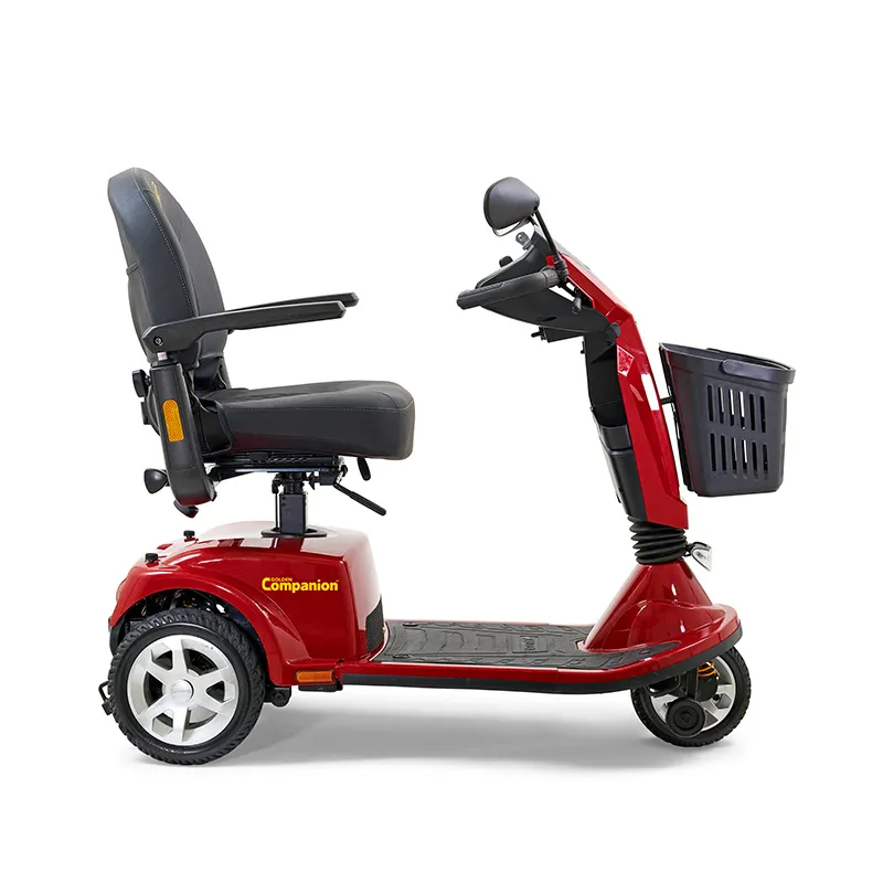 The Golden Companion 3 Wheel Full Size scooter delivers enhanced comfort, increased performance, and a refined design for users who want more space and capability in a portable scooter. With a robust 400 lb weight capacity and a stable three-wheel platform, the Companion Full Size offers excellent maneuverability while providing generous legroom and foot space for all-day comfort.
