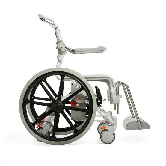 The Etac Swift Mobil 24”-2 is a self-propelled shower commode designed for independent use, offering comfort, easy maneuverability, and adaptable features. It includes a comfortable seat with rear opening, adjustable seat height, swing-away adjustable arm supports, and ergonomic footrests. Lightweight yet stable, it’s easy to propel and suitable for various users. The chair supports individual adjustments for posture and comfort, making it ideal for daily hygiene routines while promoting safety, independence, and dignity in the bathroom.