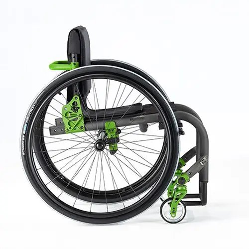 The Rogue XP is a high-performance, customizable wheelchair designed for young adults who value style and function. It offers growth adjustments with up to 3″ expansion in width and depth, ensuring a lasting fit. Users can personalize their chair with the Color Accent option, which highlights parts like the back plates and camber tube with durable powder-coated finishes. The Integrated Swing-Away Armrests adjust with the backrest for optimal positioning. Crafted from 7000-series aluminum, the Rogue XP is lightweight, durable, and responsive, featuring an adjustable Dynamic 5th Wheel for added stability during active movement and wheeling skills.