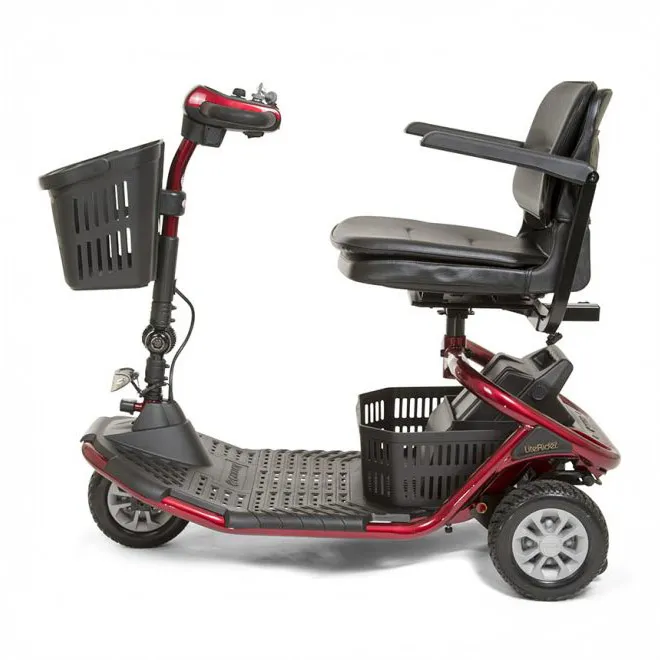This model features a standard Delta tiller, adjustable armrests, and a comfortable stadium-style seat with a full swivel mechanism to support easy transfers on and off the scooter. Completely wireless disassembly allows the LiteRider 3W to break down quickly for convenient transport and storage. With practical storage baskets, larger batteries for improved range, and responsive handling, the LiteRider 3W is an excellent choice for users seeking a reliable and maneuverable scooter for daily use.