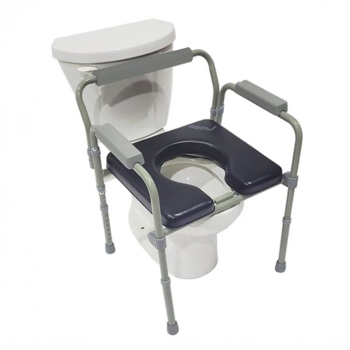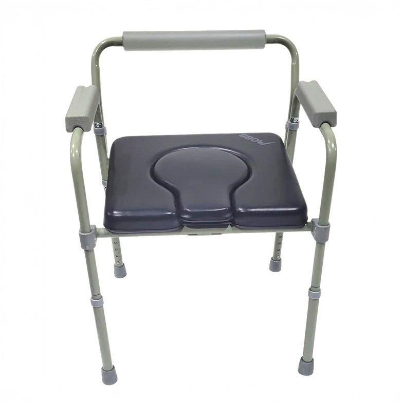 Designed for comfort and ease of use, the chair features a padded seat and backrest, height-adjustable legs, and a durable steel frame with corrosion-resistant coating. The open front and rear access design allows for easier hygiene and caregiver assistance, while the included commode bucket and lid support hygienic disposal. With a 300 lb weight capacity, the Padded Folding Commode Chair offers a reliable, everyday accessibility solution focused on comfort, convenience, and practical usability.