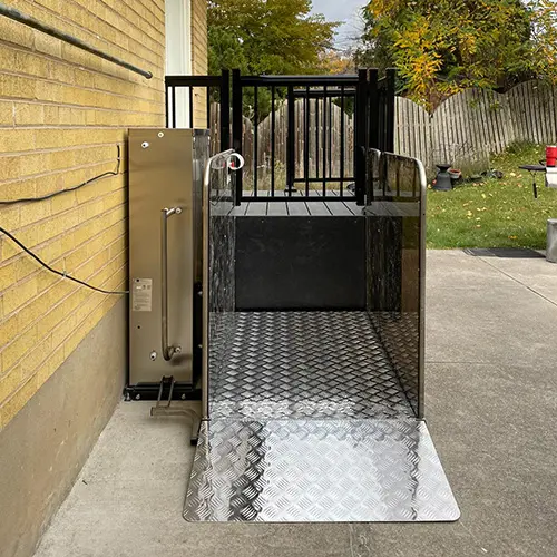 The Serenity Vertical Platform Lift (VPL) comes in five SH1 series models: 28″, 52″, 72″, 105″, and 144″. Each model can be configured for straight-on/straight-off access or a 90-degree turn. The 28″, 52″, and 72″ models offer both AC and DC power options, allowing them to run on a power outlet or rechargeable batteries, while the 105″ and 144″ models are DC-powered. Smoked polycarbonate side wall panels provide safety while keeping users visible. Designed for comfort and versatility, the Serenity VPL ensures smooth, quiet operation and reliable performance for enhanced mobility in any space.