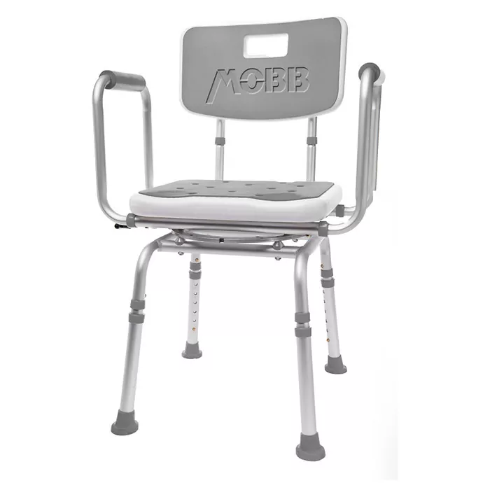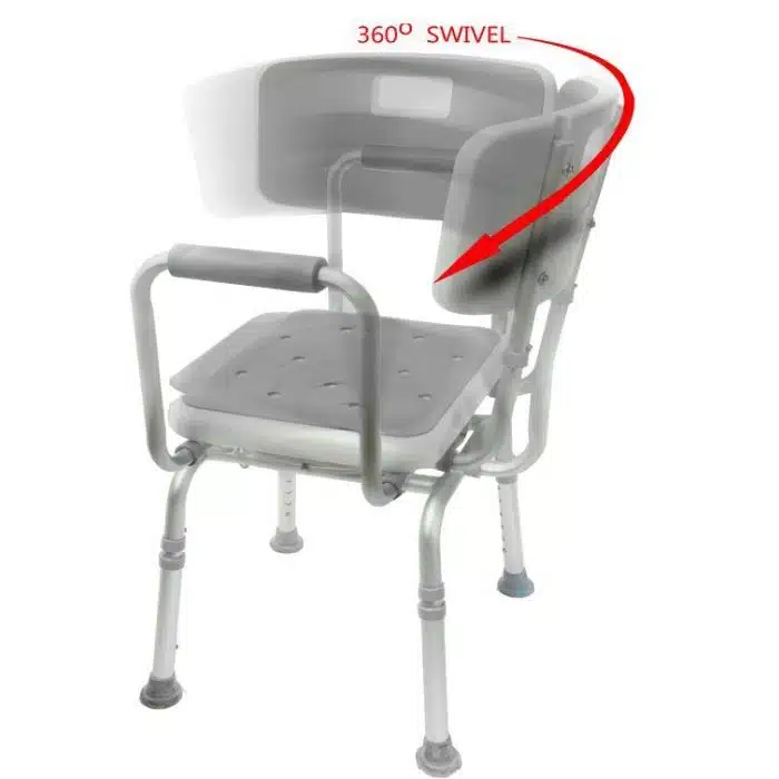 The Swivel Shower Chair is a versatile bathing aid designed to improve safety, comfort, and ease of movement during showering. Featuring a 360-degree swivel seat that locks securely at 90-degree increments, it allows users to rotate smoothly for easier transfers in and out of the chair while maintaining a stable, controlled position.