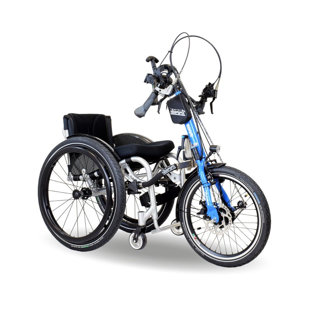 The Triride Tribike Manual is a lightweight, compact handbike designed for those who love to pedal. Weighing from just 7.5 kg, it features racing hand pedals, adjustable pedalling position, integrated hub brake, and disc brake for smooth, controlled rides. Available with 8 or 11-speed gear hubs and wheel sizes of 16” or 20”, it’s perfect for both city and cross use. Customizable in various colors, the Tribike offers independence, fitness, and fun in a sleek, easy-to-handle design.